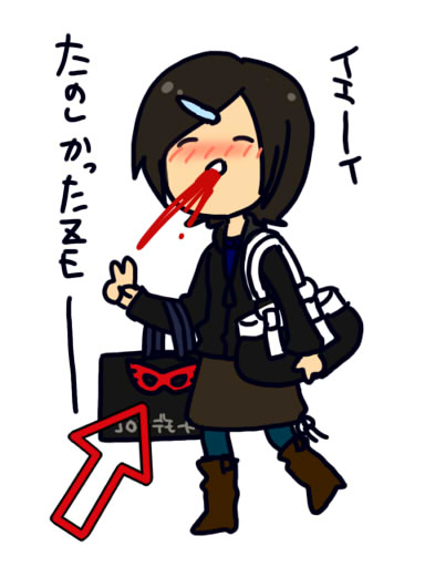 会場にいる間、コ○サの紙袋に手作りのレッドマスクをくっつけて歩き回ってたら、